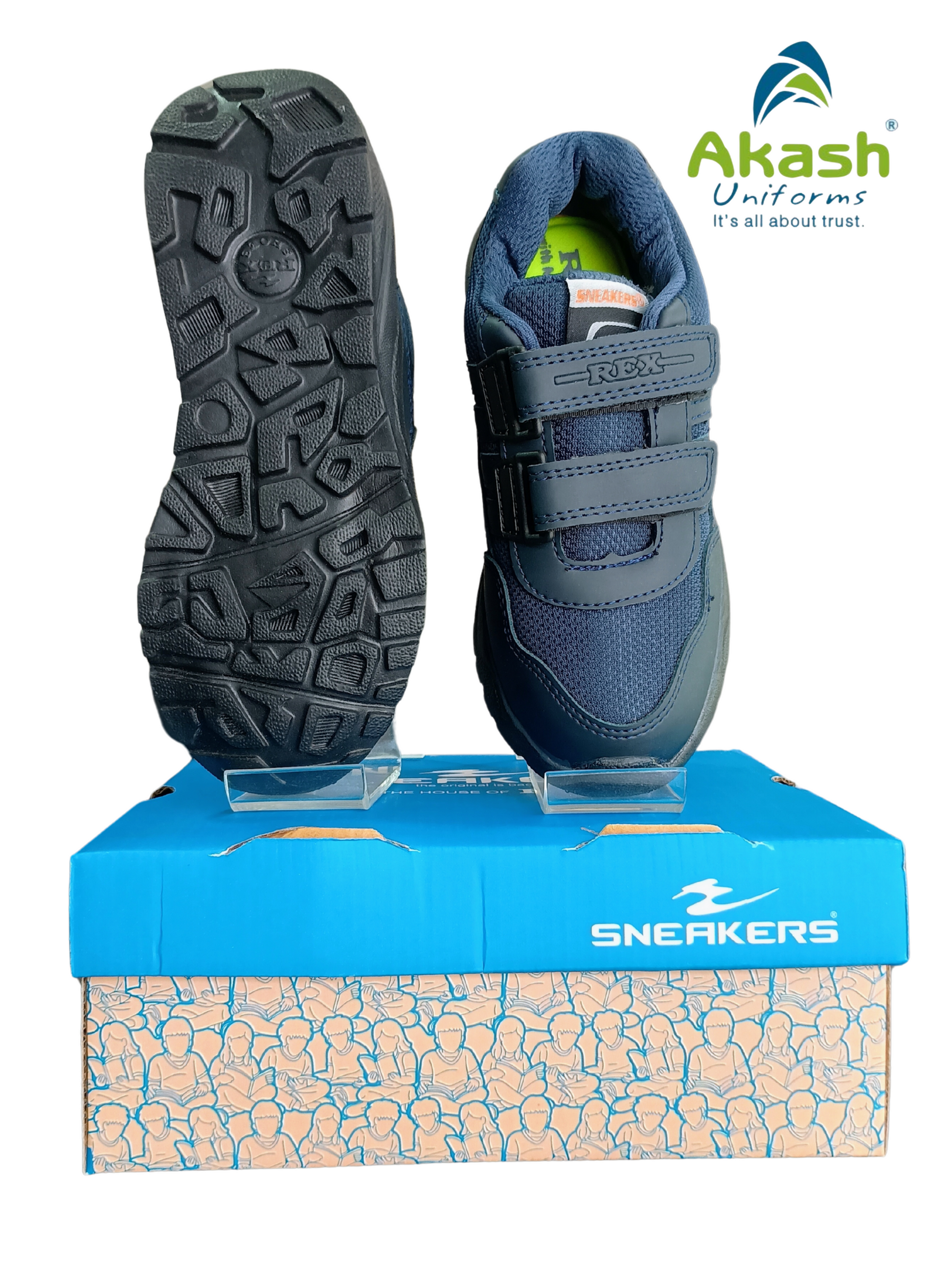 QUEENS' COLLEGE, PRIMARY - ARMOUR BLUE -VALCRO - REX